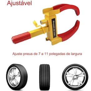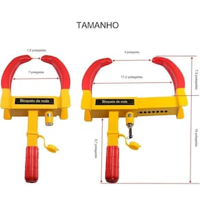 Características: 1. A braçadeira com revestimento macio não risca ou danifica as rodas ou aros e as braçadeiras apertadas na roda para maior segurança. 2. Fácil de armazenar, leve, versátil, configuração muito simples e conveniente. 3. Altamente visível devido às cores brilhantes. 4. Pode ser ajustado para caber em pneus de 7 a 11 polegadas de largura pneu com menos de 28cm . 5. Esta braçadeira de bloqueio resistente é um dispositivo anti-roubo perfeito que irá imobilizar completamente uma roda de girar.