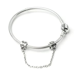 Trava de segurança com rosca fabricada em Prata 925 com desenhos de flores. Não se engane com materiais folheados e banhados. acabamento e polimento manuais. Antes de adquirir a sua trava, identifique a espessura da sua pulseira, ou seja, o quanto a sua pulseira é grossa. Assim você saberá qual é o tamanho da trava tem que comprar para que ela entre sem problemas e não fique larga. Já que, caso a sua trava fique larga ela não cumprirá o seu papel que é proteger a sua coleção. Essa trava é de rosca e não o modelo de argola de silicone, ou seja, a sua pulseira deve conter o giro. Compatível com pulseiras de modelo europeu. Material: prata 925. Cor: prata. Medida aproximada: 4,5mm de vão. Marca: Mundo Briller Ean: 7805875731188