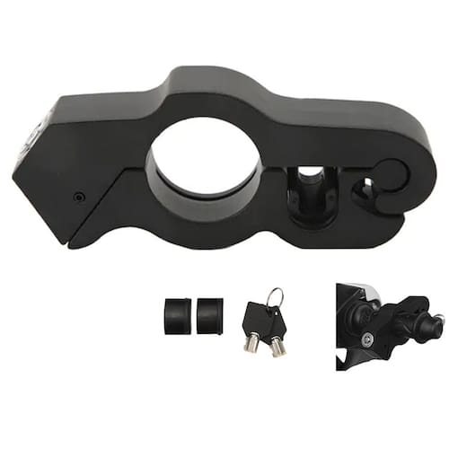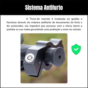 Este produto é uma trava anti roubo ajustável para guidão, adequada para uma variedade de veículos.