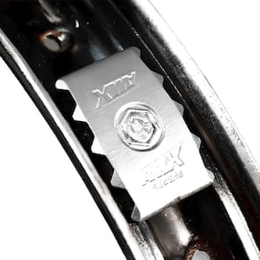 A trava de pneu Amx trabalha em harmonia com a engenharia da sua moto para evitar que o aro rode solto da roda, o que faz toda a diferença quando você está no desafiando seus limites e evita que o aro danifique a câmara de ar de sua moto.