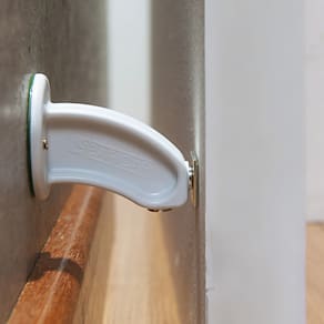 O Trava Porta Magnético é instalado rapidamente com adesivos super resistentes, sem a necessidade de fazer furos no piso e na porta, porém caso queira ou haja necessidade da fixação por parafusos o produto já vem com os furos para fixação dessa maneira na base.