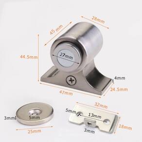 Produzido em metal e um potente imã de neodímio, o trava porta magnético mantém a porta aberta, e mesmo com a ação de ventos, evita que a porta se choque contra a parede, protegendo sua porta, a maçaneta e o revestimento da parede.