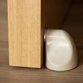Trava Porta Magnético O Trava Porta Magnético é pequeno e discreto. Foi desenvolvido e projetado pela Comfort Door e combina seu design exclusivo com o alta qualidade e eficiência. Os acabamentos foram criados para combinar com todos os tipos de pisos como granito, porcelanato, vinílico, concreto e laminados, e também, com as portas de vidro, pivotantes, de madeira maciça e outras. O mecanismo do Trava Porta Magnético é composto por duas partes, uma feita em material ABS, que deve ser fixada ao piso e um ímã de neodímio, superpotente que deve ser fixado na porta. Por ser autoadesivo, sua instalação é rápida e fácil, sem a necessidade de fazer furos no piso ou na porta. Mantém a porta aberta e, mesmo com a ação de ventos fortes, evita que a porta se choque contra a parede, evitando acidentes e prejuízos. Vantagens Produzido em ABS e um potente imã de neodímio, o Trava Porta Magnético mantém a porta aberta, e mesmo com a ação de ventos fortes, evita que a porta se choque contra a parede, protegendo sua porta, a maçaneta e o revestimento da parede. O Trava Porta Magnético é instalado rapidamente com adesivos super-resistentes, sem que seja necessário fazer furos no piso e na porta. Limpeza Para limpeza do produto deve ser utilizado água e detergente neutro, não recomendamos a utilização de nenhum tipo de solventes ou abrasivos para limpeza, pois podem causar manchas no produto. Instalação 1. Limpe as superfícies onde o produto será aplicado. É muito importante que as superfícies estejam limpas. 2. Alinhe a porta na posição desejada e marque o local. 3. Retire a proteção do adesivo da base do TRAVA PORTA e aplique sobre o piso no local marcado, pressionando por pelo menos 5 segundos. 4. Retire a proteção do adesivo do disco e o posicione centralizado no ímã. 5. Abra a porta e pressione o disco contra a porta por pelo menos 5 segundos.
