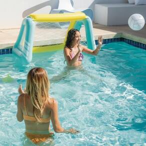 Composição: Vinil Idade recomendada: a partir de 6 anos Possui Câmaras de ar para inflar e desinflar mais rapido Acompanha pesos para manter as traves imoveis durante o jogo Inclui bola inflável Dimensão: 140 X 89 X 81cm Peso: 1.600 kg Pode ser utilizado tanto na piscina como no solo Garantia: Defeito de Fabricação Produto Importado