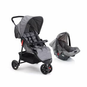 Conjunto de bebê conforto e carrinho de 3 rodas, reclinável tipo berço. Leve e com fechamento fácil. Colchonete macio, barra frontal, amplo cesto e capota.
