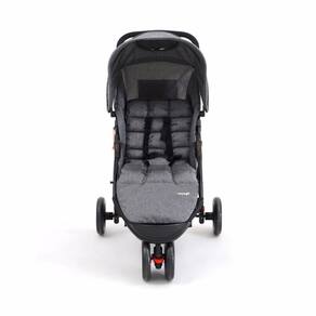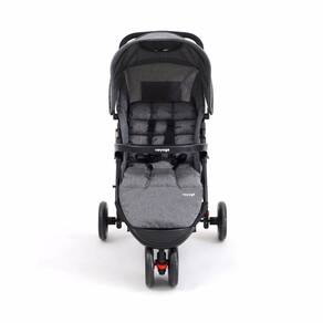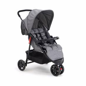 Para os pais, tem manopla com revestimento macio, capota retrátil com visor, amplo cesto porta-objetos com capacidade para 5 kg e bolso na capota. Trava de giro na roda dianteira e freio interligado, de fácil acionamento, nas traseiras.