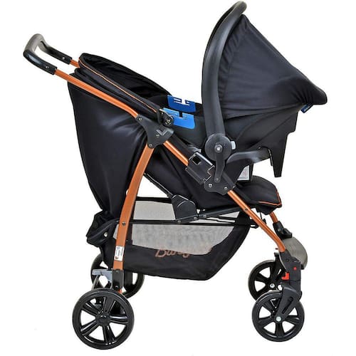 Travel System Ecco com Bebê Conforto Touring X Preto Cobre Burigotto Travel System Ecco BurigottoPara crianças recém-nascidas até 15kg.Vivo e intenso, o Ecco se sobressai. Carro Ecco: Capota regulável e removível.Cinto de segurança de 5 pontos.Protetor frontal.Rodas dianteiras com giratórios.Freio traseiro conjugado.Cesto porta-objetos.Encosto reclinável em 4 posições.Trava para fixação da cadeira Touring X. Dimensões Aberto: 101 x 56 x 90cm.Fechado: 98 x 38cm. Peso: 8,7kg. Certificado: CE-CAR/IQB 000014 52315/18-002. Cadeira Touring X: Protetor para a cabeça removível.Capota removível.Alça de apoio e para transporte.Cinto de segurança de 3 pontos.Protetor acolchoado para os ombros.Estrutura em plástico de engenharia, leve e resistente.Concha arredondada para balanço. Dimensões: Altura: 58cmLargura: 46cmProfundidade: 65cm Peso: 2,8kg. Certificado: BRA 19/02567.