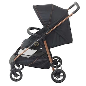Leve seu bebê a lugares incríveis. O conjunto travel system Lui Preto Cobre é composto pelo carrinho Lui e o bebê conforto materna.