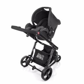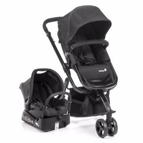 Conjunto travel system de carrinho de alumínio com 3 rodas e assento reversível que se transforma em moisés, bebê conforto e base para veículo.