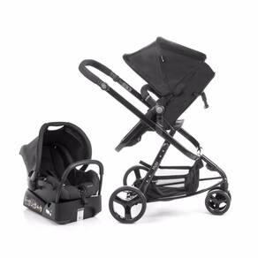 Conjunto travel system de carrinho de alumínio com 3 rodas e assento reversível que se transforma em moisés, bebê conforto e base para veículo.