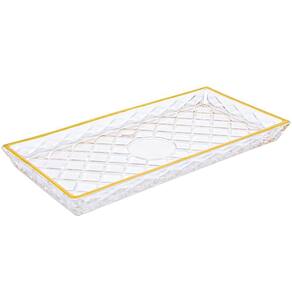 Travessa Bandeja De Vidro Retangular Diamond Fio De Ouro - Lyor 5399 Bandeja Petisqueira de Vidro Wire 10x20cm - Lyor