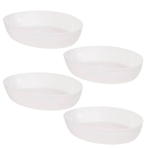 Travessa funda oval de plástico 3 litros para cozinhar e servir refeições, com decoração predominantemente branca com leves traços/ranhuras pretas por toda a peça, que traz uma aparência marmorizada super requintada à travessa.