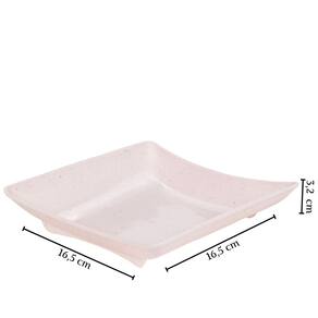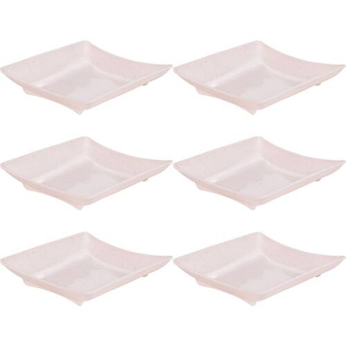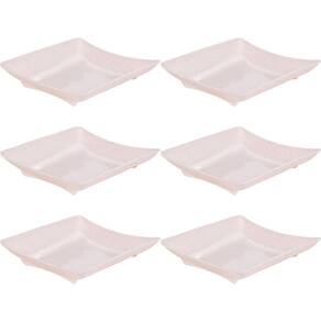 Travessa rasa quadrada de plástico com pés para servir porções, petiscos e antepastos, com decoração predominantemente branca com leves traços/ranhuras pretas por toda a peça, que traz uma aparência marmorizada super requintada à travessa.