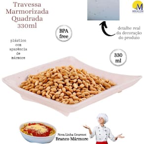 Este produto da nova linha marmorizada traz um toque peculiar, estiloso e moderno aos seus utensílios de servir. O produto é fabricado em polipropileno atóxico de alta densidade, totalmente seguro para a alimentação e livre de BPA em sua composição. A decoração no fundo do produto é permanente devido à tecnologia intraimagem aplicada em sua fabricação, que não permite desbotamento e mantém os detalhes marmorizados vivos por mais tempo. A travessa, inclusive, pode ser levada com segurança tanto ao freezer como microondas, sem comprometimento da integridade do material e tampouco da saúde de quem nele se serve. O produto suporta temperaturas extremas variantes entre -10º e 120º, embora não possa ser levado ao forno convencional.