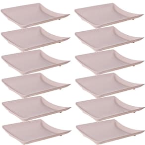 Travessa rasa quadrada de plástico com pés para servir porções, petiscos e antepastos, com decoração predominantemente branca com leves traços/ranhuras pretas por toda a peça, que traz uma aparência marmorizada super requintada à travessa.