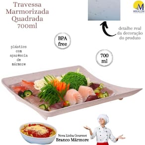 Este produto da nova linha marmorizada traz um toque peculiar, estiloso e moderno aos seus utensílios de servir. O produto é fabricado em polipropileno atóxico de alta densidade, totalmente seguro para a alimentação e livre de BPA em sua composição. A decoração no fundo do produto é permanente devido à tecnologia intraimagem aplicada em sua fabricação, que não permite desbotamento e mantém os detalhes marmorizados vivos por mais tempo. A travessa, inclusive, pode ser levada com segurança tanto ao freezer como microondas, sem comprometimento da integridade do material e tampouco da saúde de quem nele se serve. O produto suporta temperaturas extremas variantes entre -10º e 120º, embora não possa ser levado ao forno convencional.