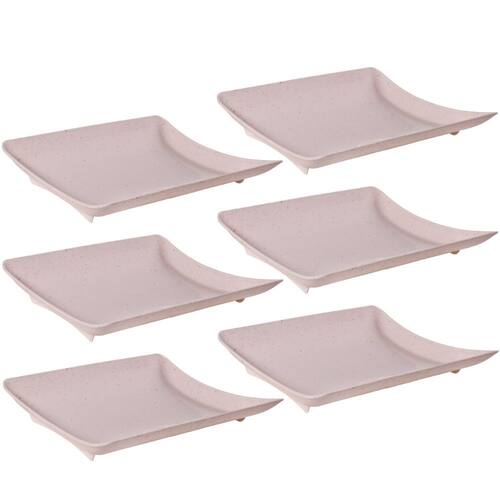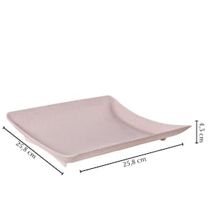 Travessa rasa quadrada de plástico com pés para servir porções, petiscos e antepastos, com decoração predominantemente branca com leves traços/ranhuras pretas por toda a peça, que traz uma aparência marmorizada super requintada à travessa.