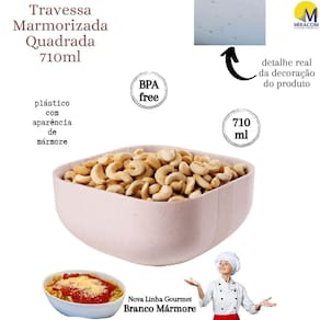 Este produto da nova linha marmorizada traz um toque peculiar, estiloso e moderno aos seus utensílios de servir. A travessa é ideal para servir pequenas porções de saladas, churrasco, petiscos e sobremesas. O produto é fabricado em polipropileno atóxico de alta densidade, totalmente seguro para a alimentação e livre de BPA em sua composição. A decoração no fundo do produto é permanente devido à tecnologia intraimagem aplicada em sua fabricação, que não permite desbotamento e mantém os detalhes marmorizados vivos por mais tempo. A travessa, inclusive, pode ser levada com segurança tanto ao freezer como microondas, sem comprometimento da integridade do material e tampouco da saúde de quem nele se serve. O produto suporta temperaturas extremas variantes entre -10º e 120º, embora não possa ser levado ao forno convencional.