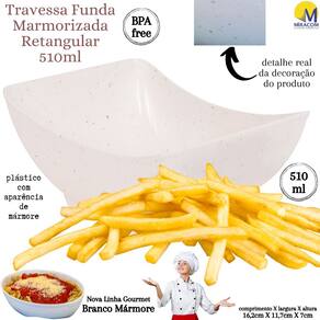 Este produto da nova linha marmorizada traz um toque peculiar, estiloso e moderno aos seus utensílios de servir. A travessa conta com um espaço generoso para servir os quitutes e porções menos volumosos. O produto é fabricado em polipropileno atóxico de alta densidade, totalmente seguro para a alimentação e livre de BPA em sua composição. A decoração no fundo do produto é permanente devido à tecnologia intraimagem aplicada em sua fabricação, que não permite desbotamento e mantém os detalhes marmorizados vivos por mais tempo. A travessa, inclusive, pode ser levada com segurança tanto ao freezer como microondas, sem comprometimento da integridade do material e tampouco da saúde de quem nele se serve. O produto suporta temperaturas extremas variantes entre -10º e 120º, embora não possa ser levado ao forno convencional.