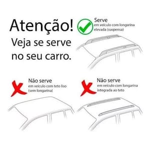 Observações Importantes: Verifique no manual do proprietário do veículo a capacidade de carga do teto. Todo rack ou Travessas sem exceções causa ruídos devido ao corte de vento. O design aerodinâmico reduz consideravelmente, mas não elimina totalmente. Não é caracterizado defeito no produto eventuais ruídos.