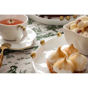 Travessa Decorativa em Porcelana Branca e Douradas