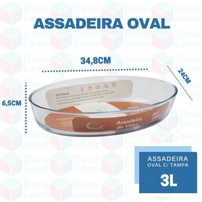 ASSADEIRA DE VIDRO OVAL SEM TAMPA - 3L Assadeira é ideal para fazer bolos e tortas e pode ser utilizada também para assados, assando ou cozinhando de forma homogênea qualquer tipo de alimento, trazendo conforto e eficácia na cozinha. Este produto pode ser utilizado no forno, micro-ondas, freezer, geladeira e lava-louças. INFORMAÇÕES ADICIONAIS: De vidro temperado com alto teor de borossilicato; Resistente à choque térmico; Pode ir ao forno; Pode ir ao micro-ondas; Pode ir ao freezer; Poder ir a lava-louças. INFORMAÇÕES COMPLEMENTARES: Modelo: Oval Sem Tampa - Marca: CasaVita - Material: Vidro Temperado - Cor Vidro: Transparente. DIMENSÕES: Comprimento: 34,8CM - Largura: 24CM - Altura: 6,5CM - Capacidade: 3L - Peso unitário: 1.378G - ITENS ENVIADOS: 1 Assadeira conforme descrição acima. Marca: CasaVita Ean: 7908586002292