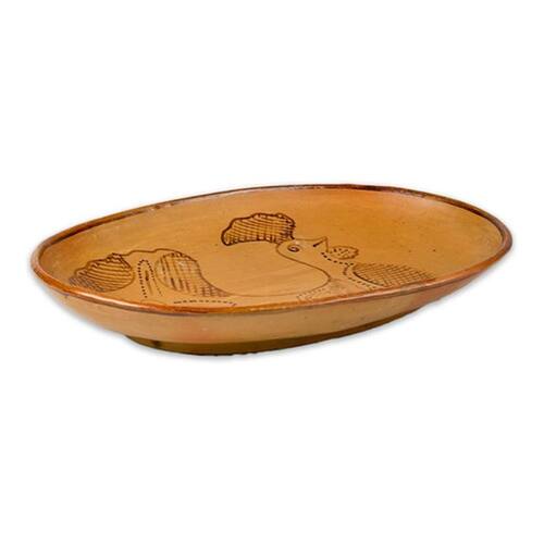 Travessa Oval De Barro Desenho Galinha Artesanato 38cm