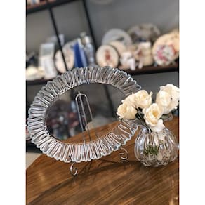 Travessa oval em vidro L33xP25xA4,5cm A travessa em vidro oval é uma peça elegante, de design clássico e atemporal. Ela possui laterais levemente onduladas, criando um efeito visual que reflete a luz de maneira charmosa, valorizando ainda mais a apresentação dos alimentos.