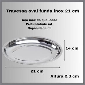 Travessa Oval Inox Funda 21 Cm Alta Qualidade Porção Arroz Feijão Salada