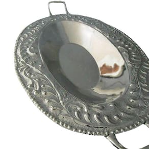 3) Ao limpar suas bandejas e travessas, é recomendável lavá-las à mão com água morna e sabão suave, secando-as cuidadosamente com um pano macio para evitar manchas ou marcas d'água. Evite o uso de produtos abrasivos ou esponjas ásperas, pois eles podem danificar o revestimento e o acabamento das peças.