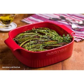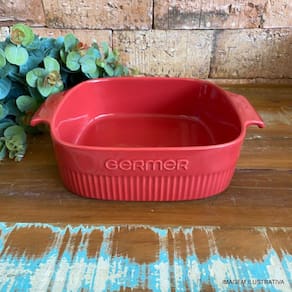 Travessa Refratária Quadrada Vermelha com Asa 21x21 cm Germer