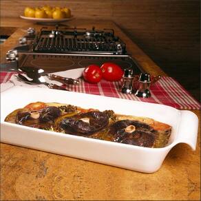 • Dimensões: Travessa P 24,5x18,6x6,5cm | Travessa M 33x18,5x6,5cm | Travessa G 41x22x6,5cm