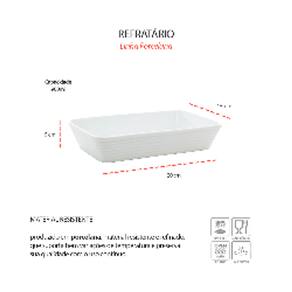 O Refratario Linea em porcelana é pratico e funcional, ideal para preparar e servir alimentos. Produzido em porcelana de alta qualidade, possui superficie homogenea, totalmente impermeavel e de facil higienizacao. Pode ser utilizado no forno e na air fryer, oferecendo praticidade no dia a dia.
