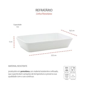 Contem:1 Refratario Medidas: 25,5 x 16,5 x 5 cm Material: Porcelana
