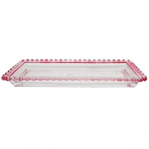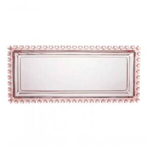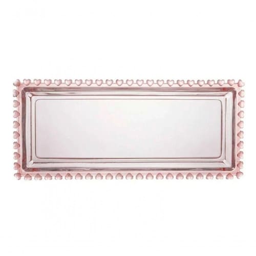 Travessa Retangular De Cristal Borda Coração Rosa - Lyor
