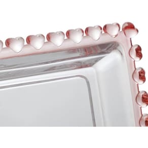 Travessa Retangular de Cristal Coração Borda Rosa 30cm x 13cm x 3cm - Lyor
