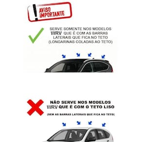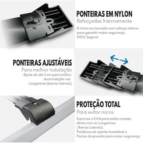 Observações importantes: Verifique a capacidade de carga do teto do seu carro no manual do proprietário do veículo. Respeite sempre a capacidade de carga estipulado no manual. As travessas poderão causar ruídos devido ao corte de vento, no entanto o perfil aerodinâmico desta travessa reduz consideravelmente, mas não o elimina. Não é caracterizado defeito no produto o eventual ruídos