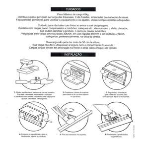 Observações importantes: Verifique a capacidade de carga do teto do seu carro no manual do proprietário do veículo. Respeite sempre a capacidade de carga estipulado no manual. As travessas poderão causar ruídos devido ao corte de vento, no entanto o perfil aerodinâmico desta travessa reduz consideravelmente, mas não o elimina. Não é caracterizado defeito no produto o eventual ruídos