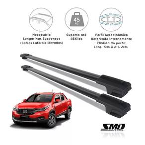 Fabricada em alumínio resistente Pintura eletrostática na cor preto Parafusos em aço inox Borracha central para apoio de cargas Modelo com 7 cm de largura e 2 cm de espessura Não é necessário fazer adaptações no comprimento a peça é feita de acordo com o veículo Capacidade máxima de 45 kgs distribuídos