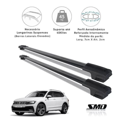 Travessa De Teto Larga Aluminio Preto Vw Tiguan 2008 À 2017 Preto Especifico Par de Travessas De Teto Rack Larga Alumínio Preto- Modelo Travessa de 7cm larg x 2cm alturaAplicação:VolkswagemModelo: TiguanAno: 2008 A 2017Cor Disponível: PretoEspecificação Técnica: Fabricada em Alumínio Resistente Pintura Eletrostática na Cor Preto Parafusos em Aço Inox Borracha central para apoio de cargas Modelo com 7 cm de Largura e 2 cm de Espessura Não é Necessário Fazer Adaptações no Comprimento a peça é feita de acordo com o veículo Capacidade Máxima de 45 kgs DistribuídosConteúdo da Embalagem: 2 TravessasInstalação:Importante:Valor do ParRecomenda-se que a instalação seja feita por profissionais capacitados ou por pessoas com conhecimento sobre todos os aspectos que a envolvem.Não nos responsabilizamos por instalação mau realizada.Atenção: As compras realizadas em nome de Pessoa Jurídica estão sujeitas à cobrança de ICMS, conforme Protocolo ICMS 41, de 4 de Abril de 2008. Caso você tenha dúvidas sobre o percentual a ser aplicado, consulte a Cláusula Segunda, 1 do referido Protocolo.Nosso horário de atendimento é de segunda a sexta das 9 as 17 horas exceto feriados .Boa Compra...