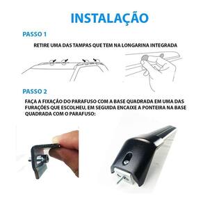 Sugestão de uso: Para transportar todo tipo de bagagem e equipamento esportivo. Podem ser utilizados como base para a instalação de outros acessórios, como bagageiros fechados ou abertos, suportes de bicicletas, suportes de caiaques, pranchas de surf, escadas e etc.
