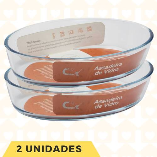 Travessa Vidro 2,4L Medio Resistente Forno Assados Festas 2 Un
