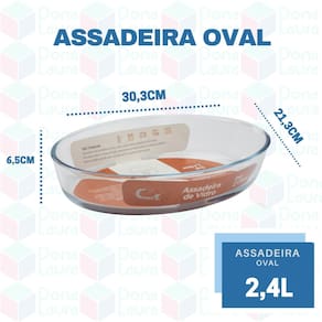 ASSADEIRA DE VIDRO OVAL SEM TAMPA - 2,4L
