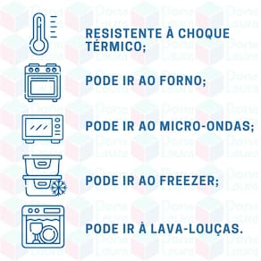 INFORMAÇÕES ADICIONAIS: - De vidro temperado com alto teor de borossilicato; - Resistente à choque térmico; - Pode ir ao forno; - Pode ir ao micro-ondas; - Pode ir ao freezer; - Poder ir a lava-louças.