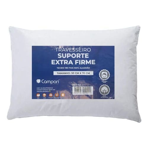 O travesseiro de suporte extra firme, com tecido 180 fios e 100% algodão, é ideal para quem busca conforto e um bom suporte para a cabeça e pescoço durante o sono. Com 50x70 cm de medidas, esse travesseiro oferece um toque suave e macio devido ao algodão de alta qualidade, enquanto o número de fios garante durabilidade e resistência. A firmeza extra ajuda a manter a postura correta durante a noite, sendo recomendado para quem prefere um travesseiro mais firme e que proporciona apoio ideal para o alinhamento da coluna cervical.