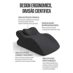 Medidas: almofada principal 60,7 x 36,5 x 24 cm, apoio de cabeça 26 x 14 x 5,5 cm. Ideal para leitura, estudos, assistir séries, trabalhar com notebook ou simplesmente relaxar.