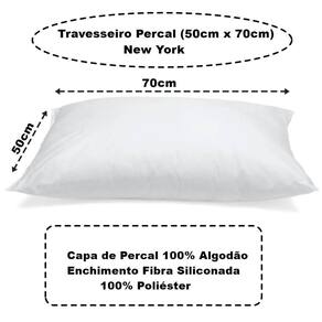 Travesseiro Buettner Percal New York Sedução 50cm X 70cm Branco Travesseiro com Capa em Percal 100% Algodão Buettner. Este travesseiro modelo New York Sedução, possui um ótimo conforto durante o sono, literalmente colabora com o seu repouso. Com enchimento de fibra siliconizada em 100% Poliéster, proporciona um toque de pluma, encantando o sono! Travesseiro Buettner Percal New York Sedução 50cm x 70cm Branco