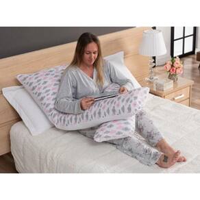 Travesseiro de corpo gestante conforto e proteção estampado nuvem rosa 1,30 metros Travesseiro gestante gravida grande modelado para dores nas costa xuxão abraço.