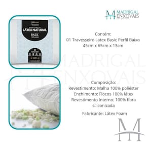 Travesseiro Látex Basic Perfil Baixo 45x65cm - Flocos de Látex - Ideal para Dormir - Madrigal Enxovais - Travesseiro Látex Natural Flocos Latexfoam Basic Baixo