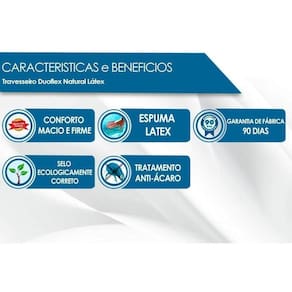 Imagens Meramente Ilustrativas. Não nos responsabilizamos pela montagem/instalação dos produtos. Todas as informações divulgadas são de responsabilidade exclusiva do fabricante/fornecedor. Tecido com Tratamento: AntiÁcaro e AntiFungo | Tipo do Materiais do enchimento: Látex | Tipo de Conforto: Macio c/ Firmeza | Certificações de Qualidade: Ecologia Correto | Tempo de Garantia: 3 meses | Altura do travesseiro: Médio | Nossa Avaliação: Qualidade Excelente | Tecido da Capa de Revestimento: Algodão | Vantagens Extras do Travesseiro: Lavável | Quantidade por Embalagem: 1 unidade | Formato do Travesseiro: Tradicional | Formato de Venda: Unidade | É hipoalergênica: Sim | É Antiácaros: Sim | É Antibacteriana: Sim | Com aromaterapia: Não | É Lavável: Sim | Código universal de produto (GTIN): 7896806700045 | Condição do Item: Novo | Link Site: https://www.costaricacolchoes.com.br/produtos.asp?produto=19271 | Numeral: 0 | Não se Aplica: N/A | Não Possui: Não | Link Youtube: https://www.youtube.com/watch?v=SkhM5HqThNM | ID Youtube: SkhM5HqThNM | Linha/Modelo: Duoflex | Cor Cnova: Blush | Cor Meli: Ciano | Contatos Sac Fábrica: www.duoflex.com.br | Categoria Trilha: Cama, Mesa e Banho> Travesseiro Látex | Categoria - Sub: Travesseiro Látex | Categoria - Pai: Cama, Mesa e Banho | Comprimento Embalagem: 40.00 | Largura Embalagem: 60.00 | Altura Embalagem: 13.00 | Kit: 0 | Peso: 2.28 Kg | Peso Real Kg: 2.28 | Peso Cubado: 9.50 | Volumes: 1 | M3: 0.04 | Comprimento/Profundidade: 65 cm | Largura: 45 cm | Altura: 13 cm | Tamanho Montado: Larg:45.00 x Comp/Prof:65.00 x Alt: 13.00 | Comprimento/Profundidade Montado: 65.00 | Largura Montado: 45.00 | Altura Montado: 13.00 | Data Cadastro: 2023-5-29 19:37:58 | Sigla Estoque: 6 | Marca: Duoflex Ean: 7896806700045